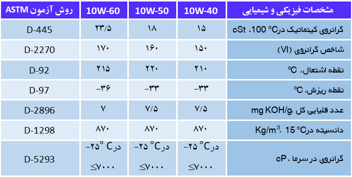· خاصیت روانکاری مناسب در دماهای پایین بویژه در لحظه استارت زدن